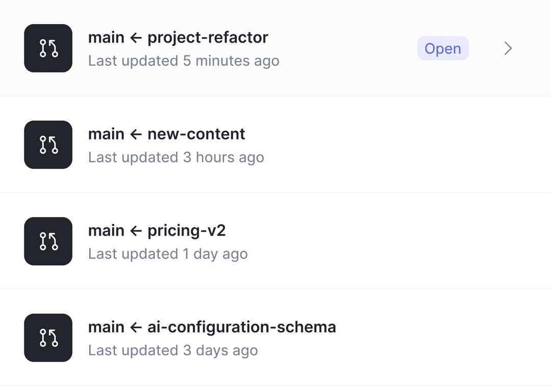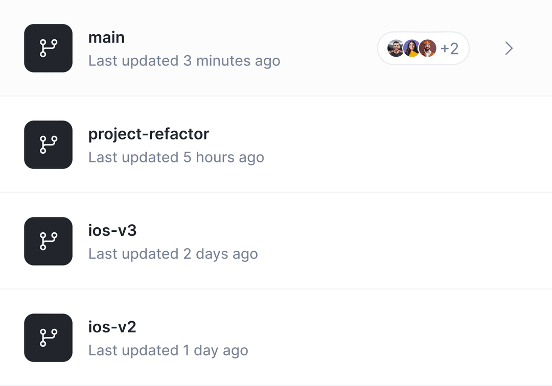 All your feature flags, experiments, analytics events, and app configuration are versioned together in a single Git-based history.